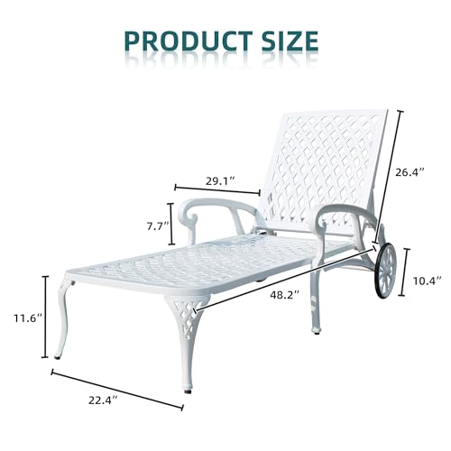 MOONMISS Chaise Lounge Chair, Outdoor Lounge Chairs with Adjustable Backrest, Reclining Chair with Wheeled Stool Legs for Patio, Beach, Yard, Pool