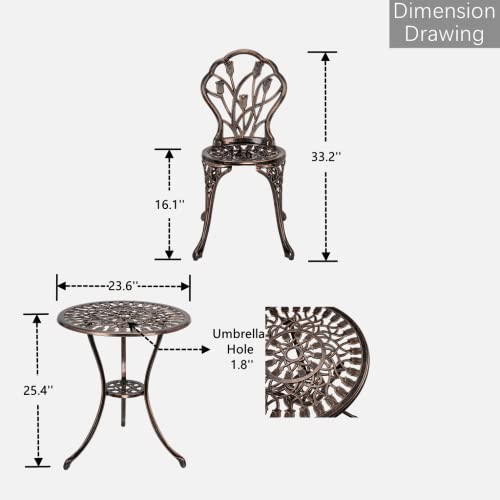 MOONMISS 3 Piece Outdoor Bistro Table Set, Cast Aluminum Bistro Table Set with Umbrella Hole, Bistro Table and Chairs for Backyard, Balcony
